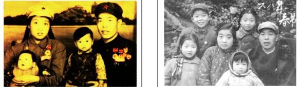 图(1)父亲、母亲和姐姐、哥哥的合影; 图(2)父亲、母亲和我、姐姐、哥哥、弟弟幸福一家的合影。