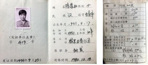 1980年12月18日,珙县财经委员会颁发给我母亲陈谋和的《中华人民共和国干部退休证》(珙财经<80>字第21号)。