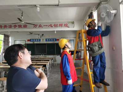 在检查现场,该公司工作人员对电源开关、电风扇、线路等设备进行全面排查,同时向陪同检查的该校负责人李中文说:“我们来服务的目的,就是要确保在持续高温天气下学校能正常用电,用好电!让学生能防暑,安心学习。”