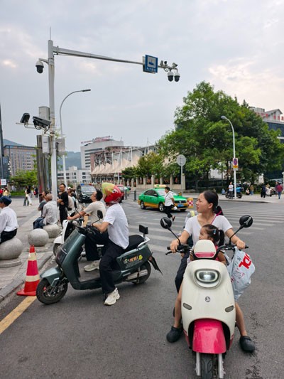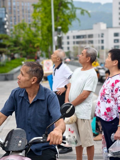 笔者看到大屏幕下人头攒动,气氛热烈。无论是骑自行车的市民,还是骑摩托车的骑手,亦或是匆匆赶路的行人,都被大屏幕上的阅兵画面所吸引,不约而同地停下脚步,驻足观看。大家或站或坐,眼神中充满了自豪与骄傲,紧紧地盯着屏幕,生怕错过任何一个精彩瞬间。