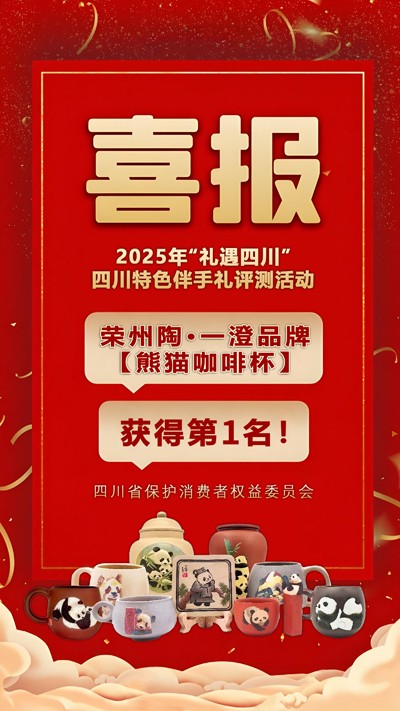 9月8日,记者从荣县土陶创意园采访获悉,由四川保护消费者权益委员会主办的2025年“礼遇四川”四川特色伴手礼评选活动,通过8月29日至9月7日的线上投票,荣县土陶创意园刘勇大师匠心制作的“熊猫咖啡杯”,以246786票斩获线上投票第一名。