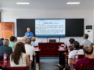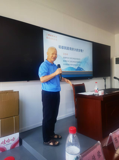 郫都区老科协党总支书记卫志中以“了解郫都历史,坚定文化自信”为主题,从历代关于“古蜀都城”的典籍记载谈起,到如数家珍地展示郫都区的文物出土,以文物考古成果为依据,同时采用岁月加减的算数方式,实证了《郫都到底有好大的岁数?》这个困惑了四川史学界了多少年的课题。