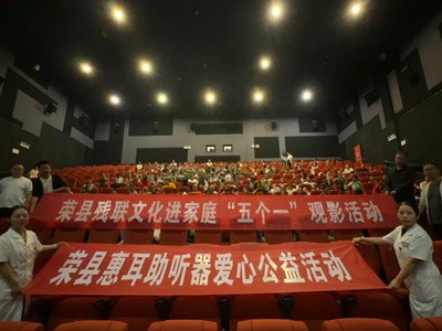 当日,还开展了爱心捐助活动,由荣县惠耳助听器提供爱心物品对重度残疾学生进行发放,同时在观影后进行了拍照留念。