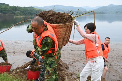 大坝上,一辆货车停靠栏杆处,七八个小伙子负责将一筐一筐、一背篓一背篓的漂浮物装上车,虽然弄得满身杂物,但没有一人说一声脏,打捞转运装车现场,市小双水库服务中心的党员干部和职工,用责任用行动诠释着这场漂浮物打捞接力赛。“虽然,我们平时很少干体力劳动,但为了库水更清洁,我们感到全身有力气,因为这是我们的责任。”干部职工向记者说到。