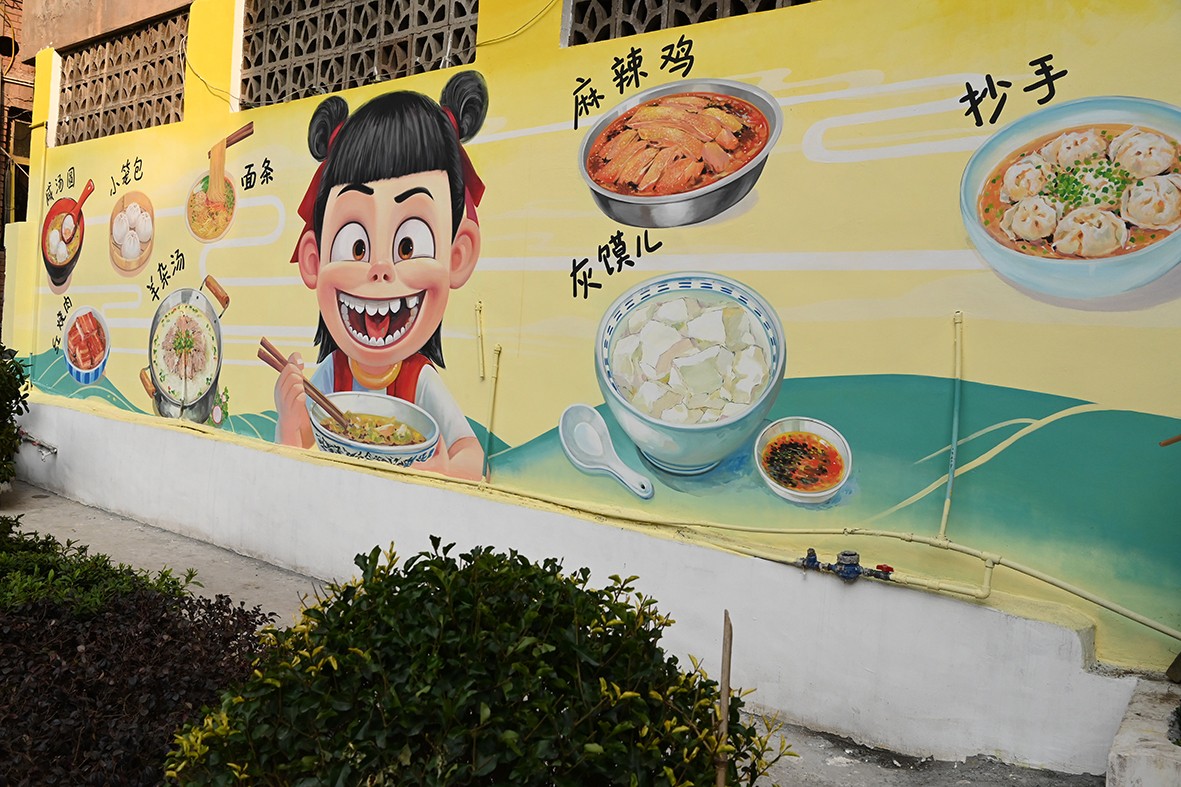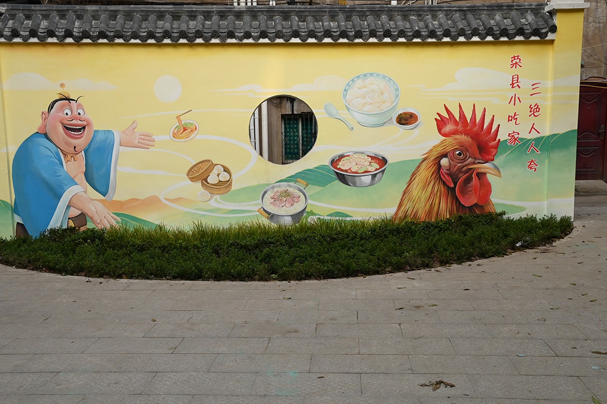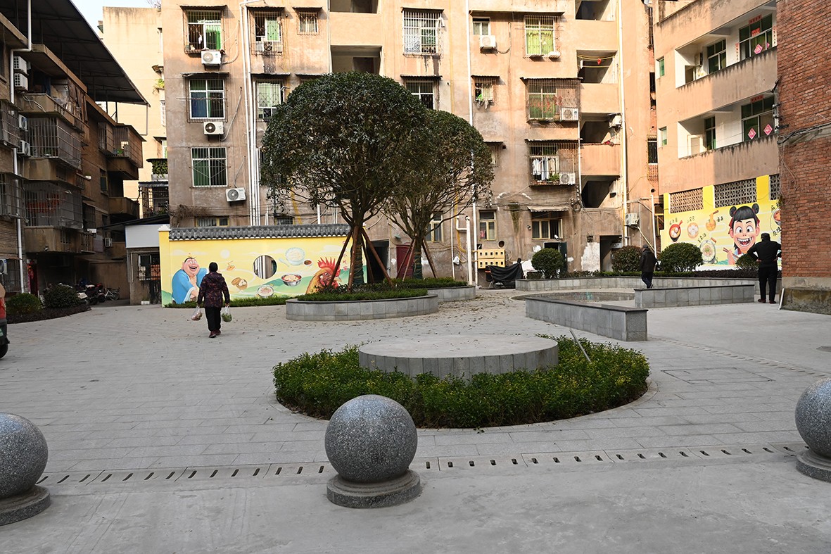1月22日,荣县老城区西南街64号巷内,一处曾经的老旧危房完成了华丽蜕变,变身成为充满烟火气的口袋公园。两棵“成年”桂花树“破土”而出,预示着明年中秋时节这里将香飘满园;近800平方米的小广场“无中生有”,每天迎接着茶余饭后前来休闲的市民;特色美食文化墙上,麻辣鸡、豆花、羊杂汤、咸汤圆等荣县传统美食的壁画,生动讲述着这座城市的烟火故事。