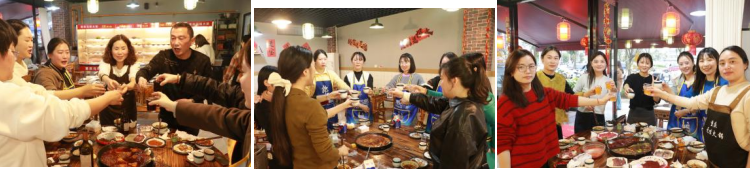 夜幕降临,热气腾腾的火锅正如此刻火热的心情。大家举杯畅饮,谈天说地——工作上的压力、生活里的琐碎,都在这一锅里化作暖意与笑谈。