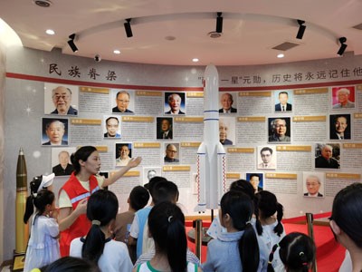 走进板桥社区军旅文化馆,一件件陈列的物件让孩子们驻足:锈迹斑斑的抗日战争时期步枪,枪身的划痕诉说着与敌人浴血奋战的过往;抗美援朝战士的家书已经泛黄,字里行间满是保家卫国的赤诚;“走向深蓝”是中国现代化军舰模型的展示,从无到有,海军装备的发展见证了国家的强大;23位“两弹一星”元勋事迹展墙,邓稼先在核试验场因辐射倒下仍坚持工作,钱学森放弃国外优渥条件毅然回国,让抽象的“爱国情怀”变得具体可感。整场参观,孩子们眼中满是惊叹和敬佩,更有孩子凑近讨论“他们不怕苦吗”“真是太厉害了”。
