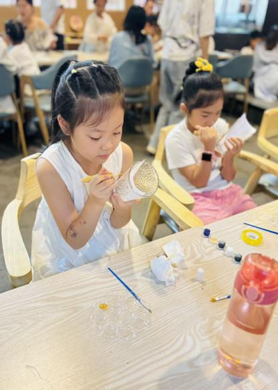 随后,进入手工玻璃绘彩绘环节,小朋友们,发挥自己丰富的想象力和动手能力,亲手为老师制作独一无二的礼物。大家拿着自己制作的作品,相互比较,交流经验,脸上满是喜悦和成就感。小朋友们纷纷交流讨论起来:“我要把制作的玻璃杯送给我最喜欢的语文老师”祝老师节日快乐!”