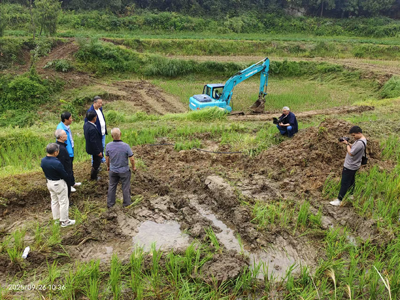 上山区农业与平坝比较相对要晚一个季节。今年“八庙山”上是6月天老爷下了一场透地雨,他家是抽水请人栽秧。秧苗载下后,6、7月份基本没有看到天下大雨,8月20多号,天老爷连续几天下了大雨,很多土地都是干泡了的,大雨一来,许多土坎、田坎都垮了。现在又只好请挖掘机修土坎、田坎。我们现场看到的就是挖掘机在补土砍子,修吨水田坎。从他家的情况看,灾后农田基础设施建设修复,请挖掘机,买河沙、水泥,人工开支等杂费都需要3万多元。