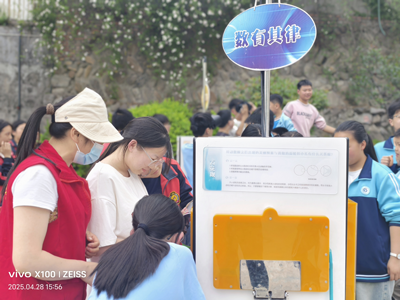 活动现场,满载20余件前沿科普展品的“大篷车”化身“移动科技馆”,涵盖声光电、机械力学、人工智能等领域。学生们在科普讲解员的引导下,亲手操作“VR眼镜”“虚拟现实技术”、“健康生活”、“能力测试”、“物有其妙”、“数有定律”等装置,探索电磁波、抛物线焦点等科学原理。