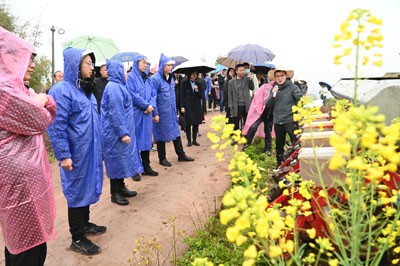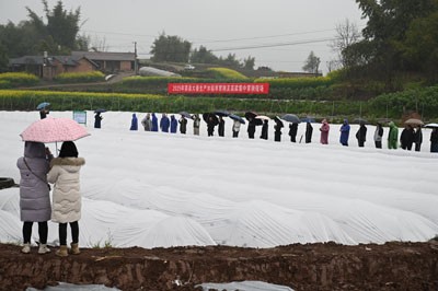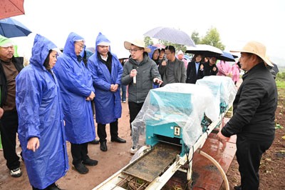 春回大地,万象“耕”新。3月5日,荣州大地不间断的春雨,让翱翔的小鸟展翅难飞,让勤劳的蜜蜂望花叹息。但这天,荣县乐德镇红土地上,大型旋耕机在耕地,大型播种机在种玉米,机械化育秧机在演示水稻育种,勤劳的村民在冒雨播种高粱,还有身披雨衣手持雨伞脚踏泥泞在雨中观摩“取经”的21个镇街农技员、种粮大户“观摩团”。这里,是荣县2025年农业生产“誓师”现场会现场,县委副书记宋加斌参加。