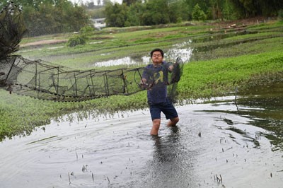 “一早,我就到正紫镇流转的300多亩稻虾地耕田去了,准备插秧,让你们等久了!”“没事,没事!”眼前,穿着短裤和短袖T恤打着赤脚的邓健清,从一辆长安面包车上跳下这样寒暄着。他那黑黑而没修剪的胡须以及黑色的皮肤,描写着“虾兵粮将”的起早贪黑。