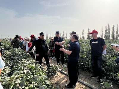 在项目推进过程中,成都华宏生物科技有限公司董事长,全国著名沙漠盐碱地改良专家李智強带领研究団队深入新疆天山南北和塔克拉玛干沙漠,在盐碱棉田一线,进行实地调研与试验示范,精准分析土壤盐碱特性及棉花生长需求,针对性地开展技术攻关与示范推广工作。