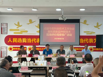 2025年8月7日,成都市老科学技术工作者协会在彭州市葛仙山镇熙玉村"仙山智理家"文创中心举办梨优质新品种新技术现场评价观摩推广活动。来自彭州、新津、龙泉驿等8个区(市)县的50余名老专家、种植户代表及农业部门负责人冒雨参会。