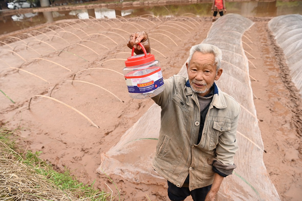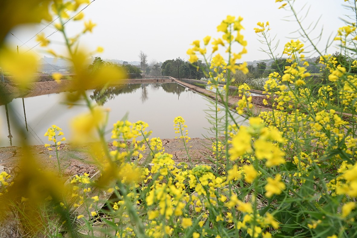 顺着田间小径前行,满目的油菜花让人目不暇接,随手用镜头记录下村民们忙碌的身影,不知不觉便来到了灯坡村。在这里,77岁的杨大爷正与老伴默契配合,为播了水稻种子的秧田搭建“小房子”。“8厢秧田我只播了3斤种子,洒得稀一点,今后秧苗才能长得更粗壮,这可是我种了一辈子地摸索出来的经验。”杨大爷一边说着,一边和老伴熟练地将一张地膜盖在竹棚上。旁边的村民们纷纷竖起大拇指,夸赞他种粮经验丰富、技艺高超。