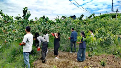 驱车进入花园村,一幅美丽的图画映入眼帘,乡村公路旁,花园沟丘陵浅山坡上,枝繁叶茂的樱桃树间距匀整,翠绿叶片下,红彤彤的樱桃如可爱的宝石缀满枝头。春深夏浅的四月末,彭州市葛仙山镇花园村迎来发展新气象。4月29日,随着百万粉丝级网红团队"三毛哥"携馨宝、倩姐、霸王花666、花姐带你吃喝玩乐等成员入驻袁庄农家乐,这场酝酿三年的"田园新生活"乡村旅游推广季正式拉开帷幕。在村党总支、村委会的统筹推动下,以50余家农家乐集群为载体,新媒体传播与传统农旅深度融合的创新实践,正在这片川西坝子上演。