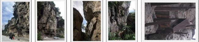 这组图片由珙县王家镇初级中学教师付强提供。图(1)→僰人悬棺景区“九盏灯”场面,以人作为参照物,自然显示了悬棺的高度;图(2)→从另一位置看到的僰人悬棺景区“九盏灯”场面,以人作为参照物,自然显示了悬棺的高度;图(3)→从“九盏灯”下面向上看到的场面;图(4)→从“九盏灯”上面向下看到的场面;图(5)→从“九盏灯”上面看到的棺木场面。