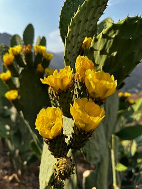 沿蜿蜒平坦的水泥路进入接待区,悬崖边的一排四个太空舱民宿,让你感受夜宿300米高悬崖房的刺激;悬崖边的就餐区,让你赫然开朗敞开心扉开怀畅饮;层林尽染的连绵群山,让你享受清新空气为你洗肺的神清气爽;那长满山坡的200亩仙人掌,不仅开出了独特的花朵,更作为佳肴端上了餐桌,并开发出仙人掌酒、仙人掌果汁、仙人掌面膜等系列产品。
