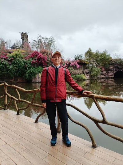 银翁拄杖仰穹苍,