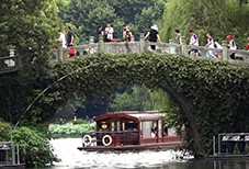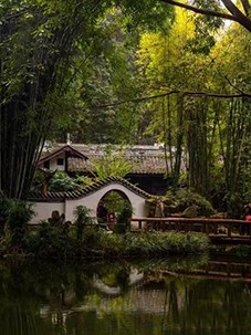 注:①枣堰:九里堤原名縻枣堰。2013年重建为遗址公园。②皇陵伎乐:成都永陵博物馆,前蜀高祖王建的陵墓,是中国唯一的地上皇陵。地宫内有“二十四伎乐”保存完好。③禅林叶:金华寺一叶禅林。金华寺始建于明崇祯年间。④馆院亭台:蜀园·园林艺术博物馆,川西园林典范。园内亭台楼阁石雕艺术精美,有都市“世外桃源”之称。⑤露天弦奏:露天音乐公园。⑥凤岭:凤凰山公园。⑦鹤渚:北湖和升仙湖湿地公园。⑧⑨《唐宫乐宴》、《宋遇东坡》是现代打造的戏曲,常在凤凰山等大公园演唱。⑩梅尧:梅尧臣,宋代诗人。有《蜀道》《送张子野知蜀州》等蜀地诗。