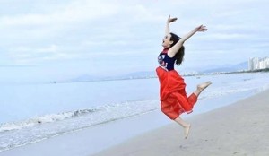 拥抱大海踏浪沙。
