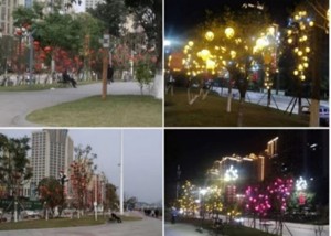 路边灯笼树彩灯。