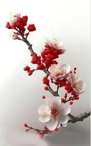 金银花贴出颂春的符桃