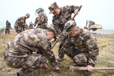 经过一个多小时的辛勤劳动,25名队员打窝栽下200多株油茶树苗,并在新植的“双拥林”边留下了合影照。(记者 蒋兵)