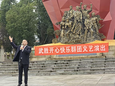 为深入贯彻四川省 “百城千乡万村 (社区)”全民健身系列活动精神,丰富老年群体精神文化生活,11 月 8 日,武胜红岩广场锣鼓喧天、欢声雷动,武胜开心快乐群团在此隆重举办双十一文艺展演。60 余名群团成员倾情演20 个精彩节目,为县场观众献上了一场兼具观赏性与感染力的文化盛宴。