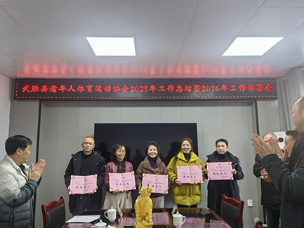 2026 年 2 月 14 日下午,武胜县老年人体育运动协会在协会会议室召开 2025 年工作总结暨 2026 年工作部署会。会议由县老体协主席李学渊主持,协会顾问陈天宁、党支部书记罗鸿、全体副主席、正副秘书长、各项目委主任、副主任、办公室主任、财务及宣传组相关负责人参会。