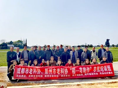 2025年4月3日,根据成都市老科协、彭州市老科协的工作安排,结合敖平镇的2025年水稻、川芎生产实际情况,在市农业农村局和敖平镇政府支持下,彭州市老科学技术工作者协会在敖平镇"川芎公社"(位于敖平镇凤泉村)举办2025年大春农业生产技术培训,重点推广"稻-芎轮作"种植模式。来自“中国川芎之乡”敖平镇凤泉村、兴全村、七星泉村、白塔店村、红岩子社区等11个村(社区)的川芎和粮食种植大户及川芎种植专业合作社、粮食种植专业合作社、家庭农场的从业人员等50余人参训,市老科协副秘书长、农艺师丁穆松,市老科协农业老专家服务团高级农艺师邹恒贵等老专家现场授课指导。