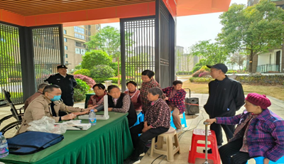 随后进入义诊环节,罗泽鑫专家为居民提供免费的身体检查,包括量血压、测血糖、心肺听诊等常规项目。针对检查中发现的问题耐心细致地为居民分析病情,提供个性化的治疗建议和健康指导,并解答居民们关于日常保健、疾病防治等方面的疑问。