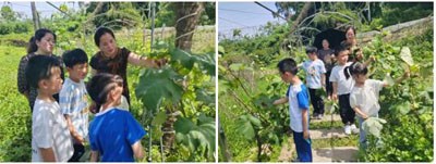 走进种植基地望着绿色的菜园,孩子们被不同种类的蔬菜难倒了,只好围着老奶奶,好奇地问着一个个问题。老奶奶志秀、晓元带着孩子们逐一认识菜名,耐心解答过程中,孩子们认识了当季的空心菜、丝瓜、辣椒等,了解了当季蔬菜种植时间、施肥管理、病虫防治以及每种蔬菜可以制作成什么样的美食,是生活中不可缺少的一部分,不同的蔬菜富含各种营养,对人们身体健康有着重要作用等的学习。