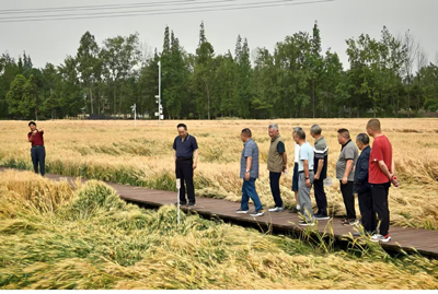 5月9日,崇州市老科协会长杜学伟、副会长邵传辉及老科协三农工委全体成员考察2025年小麦生产、水稻机械化育秧。