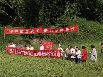 江安县科协主席刘小华在对全国科普月活动进行简要的科普宣传讲解后,结合老科协“中稻+再生稻”科推项目的示范效果,给予了高度赞赏,并就全县农业科技推广特别是“四良”即良土、良种、良法、良机科学种粮,与现场种粮大户和群众激情分享,鼓励大家积极学科学、用科学,助力农业提质增效,共同推动乡村产业振兴。