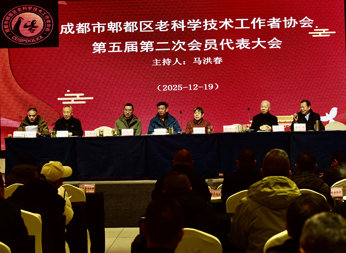 冬日暖阳沐初心,银发聚力启新程。2025年12月19日上午9:30,成都市郫都区老科学技术工作者协会第五届第二次会员代表大会在红星饭店隆重召开。来自全区各领域的老科技工作者代表、友好社会组织代表与特邀领导共120人,齐聚一堂,共商老科协发展大计,彰显银发力量的责任与担当。