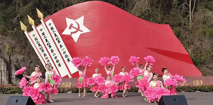 2026年3月6日,佛头山森林公园红军纪念馆前鲜花盛开、晴空朗朗。在平昌县为庆祝第116个“三八”国际妇女节而举办的“聚力兴经济·巾帼献智慧”活动中,作为协办单位的平昌县老科协夕阳红艺术团,以饱满的热情和精湛的技艺,献上了集体舞蹈《幸福中国一起走》。