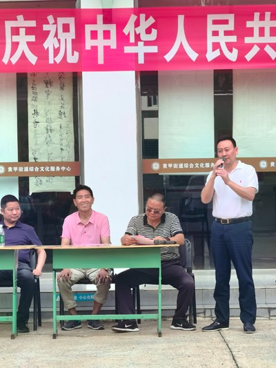 此次开幕式由双流区黄甲街道诗词楹联分会秘书长高勇刚同志主持,黄甲街道党工委副书记付舒响致辞,成都市双流区关心下一代工作委员会副主任金仕勇发表了热情洋溢的讲话,黄甲街道诗词楹联分会会长付仕水同志作这次展览活动的筹备情况,双流区原人大常委会副主任、双流区人大退休支部书记魏明海宣布“礼赞新中国•奋进新时代”庆祝新中国成立75周年书画展”开幕。