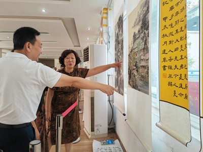 随后,各位领导、佳宾、会员、书画名家、广大群众近100人入场参观。预计这次的3天展出将迎来500人左右到此参观。此次的展览活动迎来了书画家、收藏家、书画爱好者的精美艺术作品近百幅,大家用笔墨讴歌了新中国成立75周年来的巨大变化和丰功伟绩,传承和弘扬了优秀的中华传统文化,颂扬了当今的美好时代,描绘了祖国的大好河山,聚焦了百姓生活,作品形式多样、各有千秋,古代的、近代的、现代的,什么楷、缘、隶、草、山水、花草、鸟、鱼、虫等应有尽有,各自充分的抒发了爱党爱国爱家乡爱生活的真挚情怀,饱涵了习近平新时代文化思想,为广大群众提供了美好的高雅的艺术享受,对人民群众将产生很大的激励和鼓舞作用,我们认为这次的书画展活动必将在黄甲产生一定的反响,对黄甲地区的文化发展定会起到助推作用,将会引来又一批人加入文化传承的队伍。