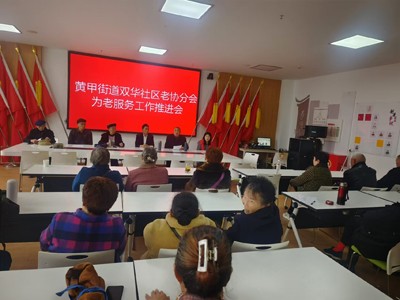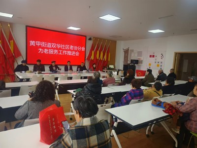 此次为老服务工作会议由双华社区老年人协会分会副会长贾时明同志主持。会议首先请了黄甲街道老年人协会秘书长曾金国同志作宣传动员并就双华社区实际如何开展好2025年工作讲了很好的实施意见。其次,黄甲街道老年人协会会长付仕水同志就重点搞好广泛深入的宣传等方面的工作进行了反复强调。双华社区老年人协会分会副会长余德清同志讲了本社区如何打一个突击仗提出了相关工作要求。中国人寿保险股份有限公司工作人员江艳就有关夕阳红安康意外险业务工作进行了阐释。