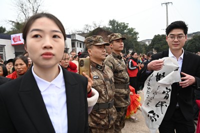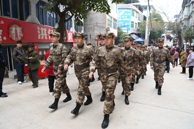 “一二三四!”这铿锵的口号,进入小镇时,就立即引来沿途群众举起手机拍照;离开小镇时,又一阵“一二三四”洪亮的空号声,引来了群众自发目送和鼓掌声! (记者 蒋兵)