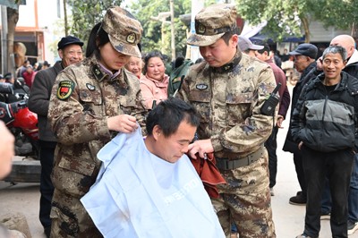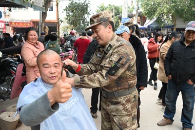 活动间歇期间,马勇、唐雪真、傅钰娟、范长青等10多名队员,又在“闹市区域”开始了义剪。“我本来还可以等几天理发,但看到你们这些‘战友’在义务理发,我一定要理一次,回味50多年前在部队时战友相互理发的情景!”70岁的老兵一边拿出退役军人优待证一边激动地说。“你们为大家义务理发做好事,我给你们点个大大的赞!”一位群众一边理发一边翘起大拇指夸队员。当日,为10多名群众义务理发。
