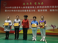 2025年12月19日,在成都市武侯区四川省老年人活动中心举办的“2026年全国老年人体育健身线上系列活动四川省启动仪式暨2025年四川省全民健身柔力球、健身球操、瑜伽交流赛活动”现场,成都高新区中和街道龙灯山社区老体协健身球队的12名队员,凭借健身球规定套路《一二三四歌》的精彩演绎,在同曲目三支参赛队伍中脱颖而出,夺得该项目第一名,总排名第六名。