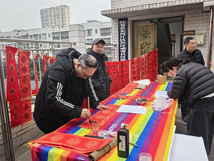活动现场,最受欢迎的当属现场春联创作区域。社区特邀的旺苍县老科协两位书法老师摆开长桌,饱蘸浓墨,笔走龙蛇。“九域迎新骏马驰,万家向暖沐春阳”、“天增岁月人增寿,春满乾坤福满门”……一副副喜庆的春联、一个个遒劲的“福”字跃然纸上,不仅承载着浓浓的新春祝福,更传递着中华传统文化的深厚底蕴。居民们或驻足欣赏,或排队求字。“手写的春联就是有年味,这比买的春联有意义多了!”拿到作品的张阿姨开心的合不拢嘴。