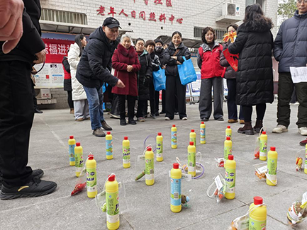 趣味互动区更是热闹非凡,科普抢答、套圈、投壶等项目让居民们玩得不亦乐乎。科普抢答环节,主持人抛出的立春习俗、科普知识等问题,引发大家踊跃抢答,现场掌声、欢呼声此起彼伏;套圈区前,居民们屏气凝神,瞄准目标奋力投掷,套中的居民欢呼雀跃,没套中的也不气馁,互相鼓励再来一次;投壶区内,大家重拾传统游戏乐趣,体验古人的雅致与从容。