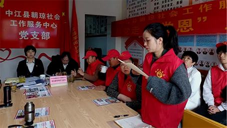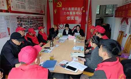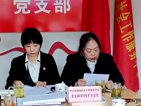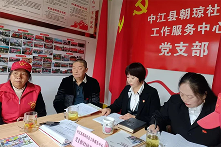 2026 年 3 月 31 日上午,中江县朝琼社会工作服务中心党支部在龙华社区朝琼党支部会议室召开扩大会议。支部书记、理事长张昭琼、支委何道荣、李兰、党员、理事会成员及优秀志愿者代表参会。会议由党支部书记、理事长张昭琼主持。