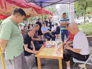 接着邹家场社区老体协主席宋英勤宣布九江街道老体协第三届老年人社区运动会象棋比赛开始!顿时比赛棋桌上,十六红黑棋相当,楚河汉界分两方。“刀枪林立”,纸上鏖战,兵马嘶吼……。参赛运动员们在楚河汉界展现了精湛的棋艺和良好的精神风貌。