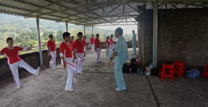 排练场地上,随着优美、欢快的音乐响起,老师们认真教,每一个动作仔细抠;学员们刻苦学,一招一式不敷衍。学员们非常珍惜老师面对面、手把手教学机会,午饭后稍作休息,下午又抓紧时间练习健身球操和太极拳。他们汗水流在身上,笑容挂在脸上。学员们经过反复操练,12名学员全部掌握了以上两套规定动作。
