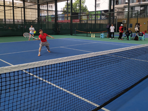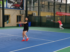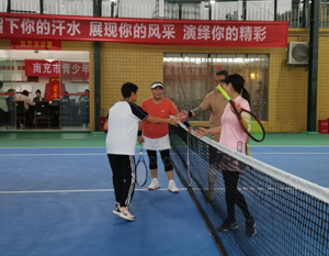 球友之间相互鼓励、加油,选手们精神抖擞,全力拼搏,时而奋力抽杀,时而灵活轻调,你来我往,互不相让。大力发球,上旋、下旋、底线对抽、正手切球、反手切削,正手穿越、网前截击、中场高压、放小球、挑后场……一球要来回打几十拍才分出胜负,尽情展示自己的看家本领。“加油”“好球”“漂亮”…此起彼伏。