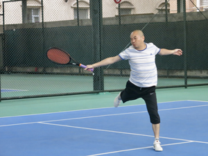 10月23日,南充市网球协会和该市顺庆区老体协网球分会在该市西山运动中心网球场联合举办以庆“重阳”为主题的网球联谊赛。球场上网球飞舞,一群大爷大妈正在奋力拼杀,他们以这样的方式隆重庆祝重阳节。